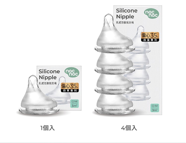 ▲nac nac妍心35%乳感防脹氣寬口奶嘴 四入S/M/L/XL/XXL 定價$360