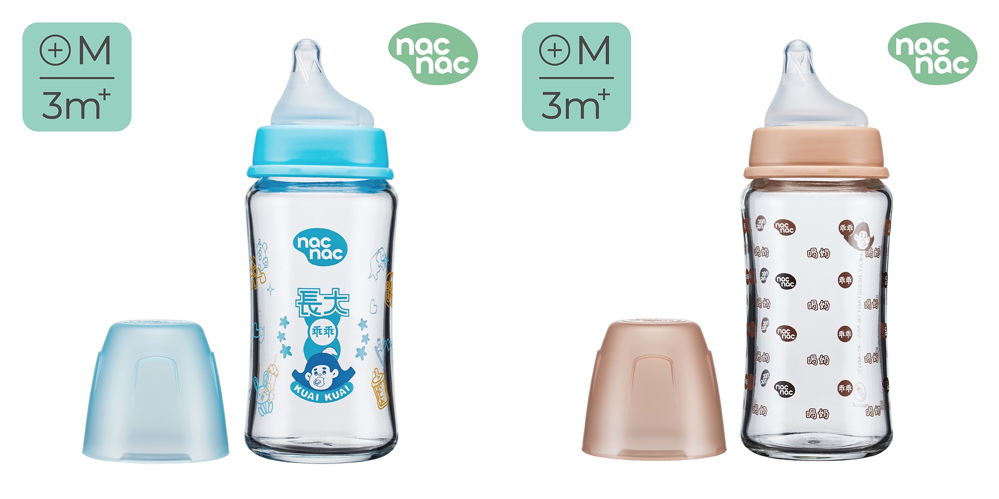 ▲nac nac ×乖乖聯名 長大/喝奶 妍心35%晶透防脹氣玻璃寬口奶瓶 240mL 定價$480